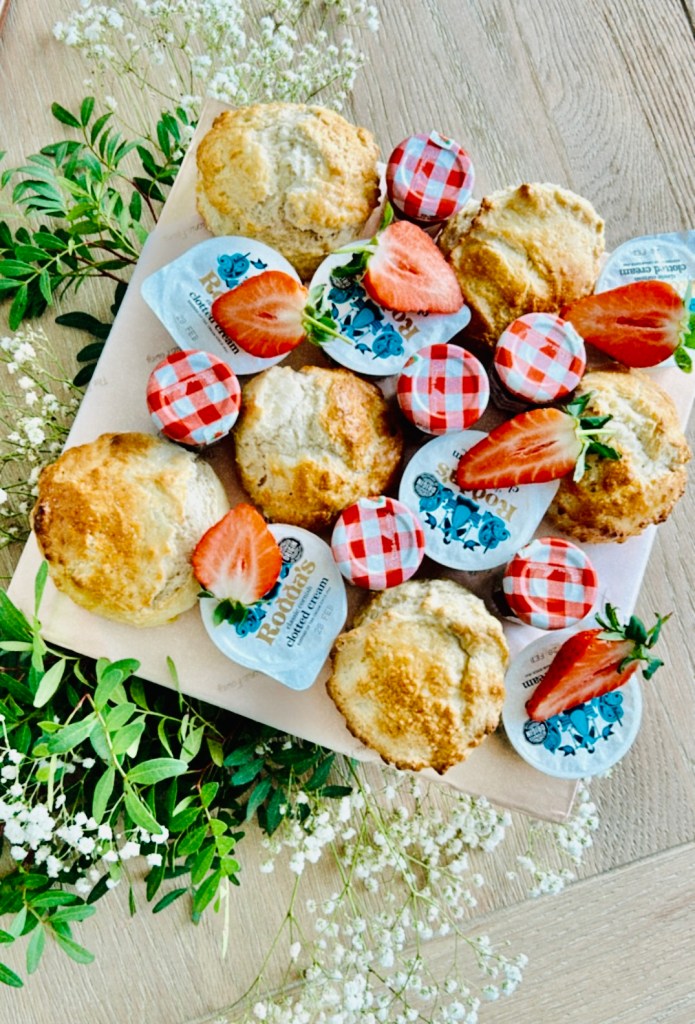 Serving 6 to 12 people (Board contains 6 homemade scones, 6 individual clotted creams & a scatter of fresh strawberries)