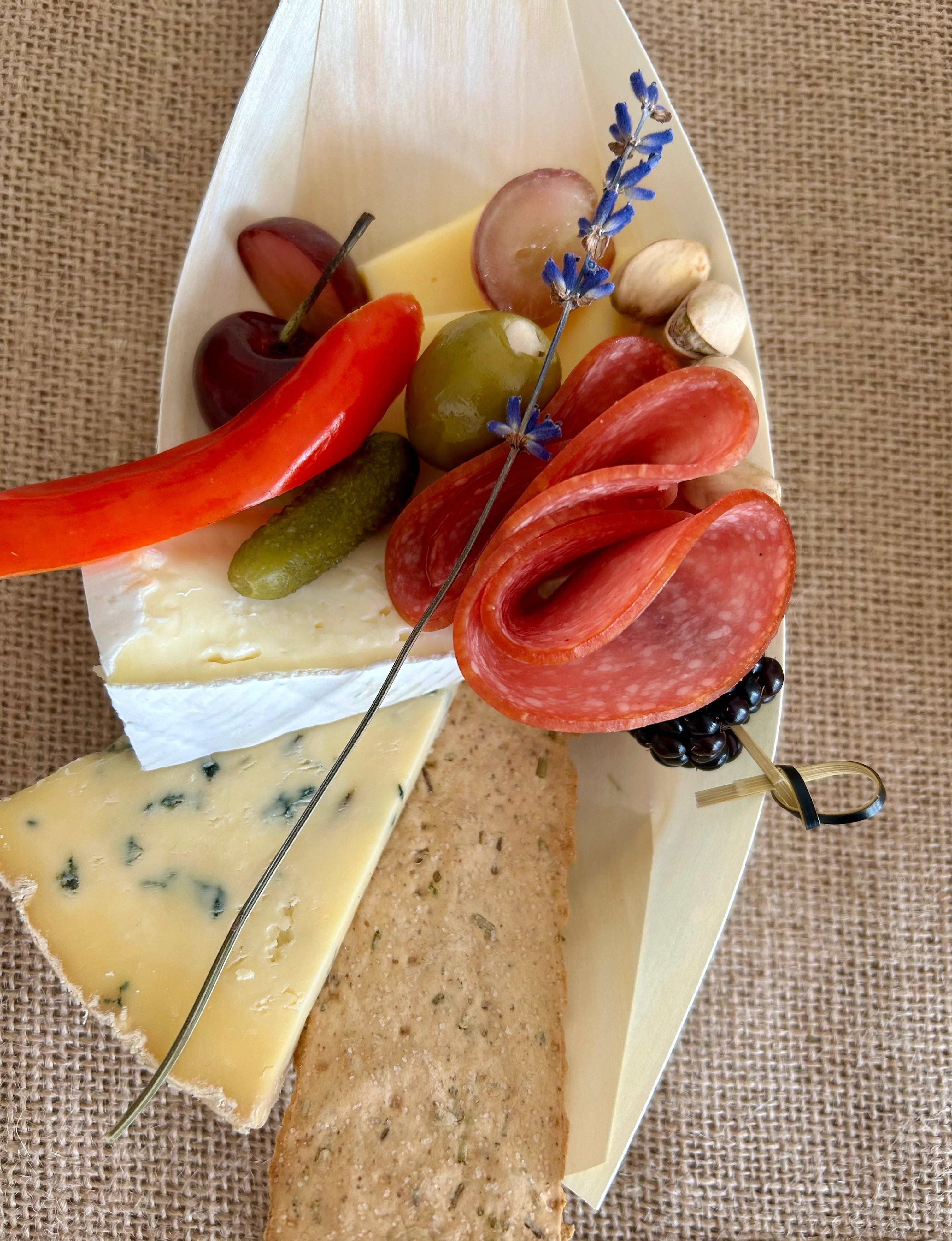 Our beautifully curated individual grazing boats are perfect for weddings & events, making an elegant canapé. Fitting into the palm of your hand, with no need for cutlery, your guests will love these chic little boats of gorgeousness. Perfect to grab & go if time is precious, with no fuss, suiting various dietary requirements & allergies. These cuties also have the advantage of being able to be split into groups between your set up spaces. Also perfect for corporate gatherings, our boats can be customised to suit your theme including adding your personalised or corporate logo sticker.